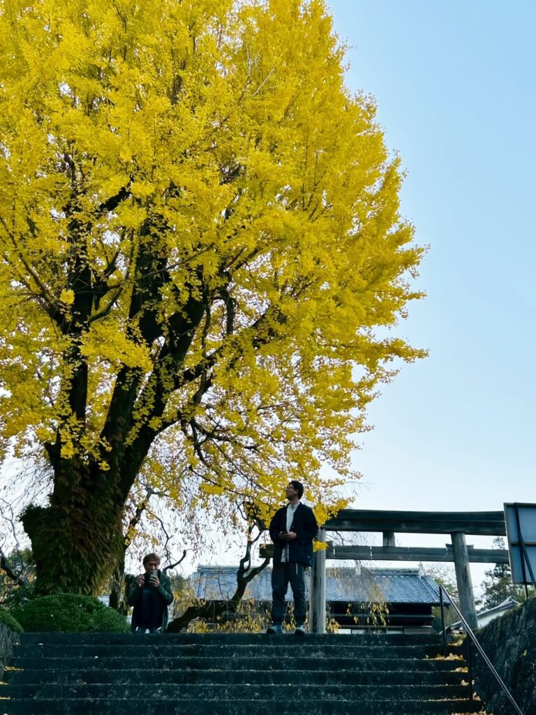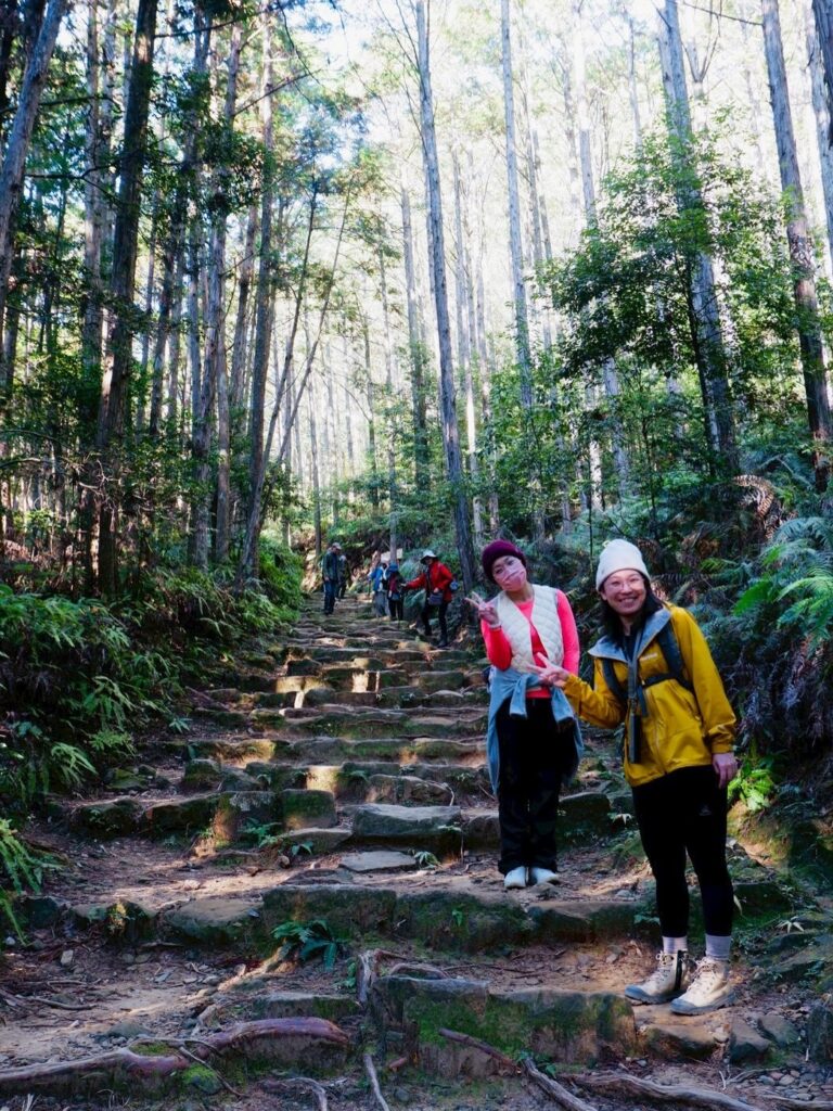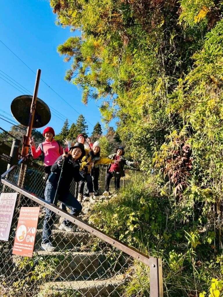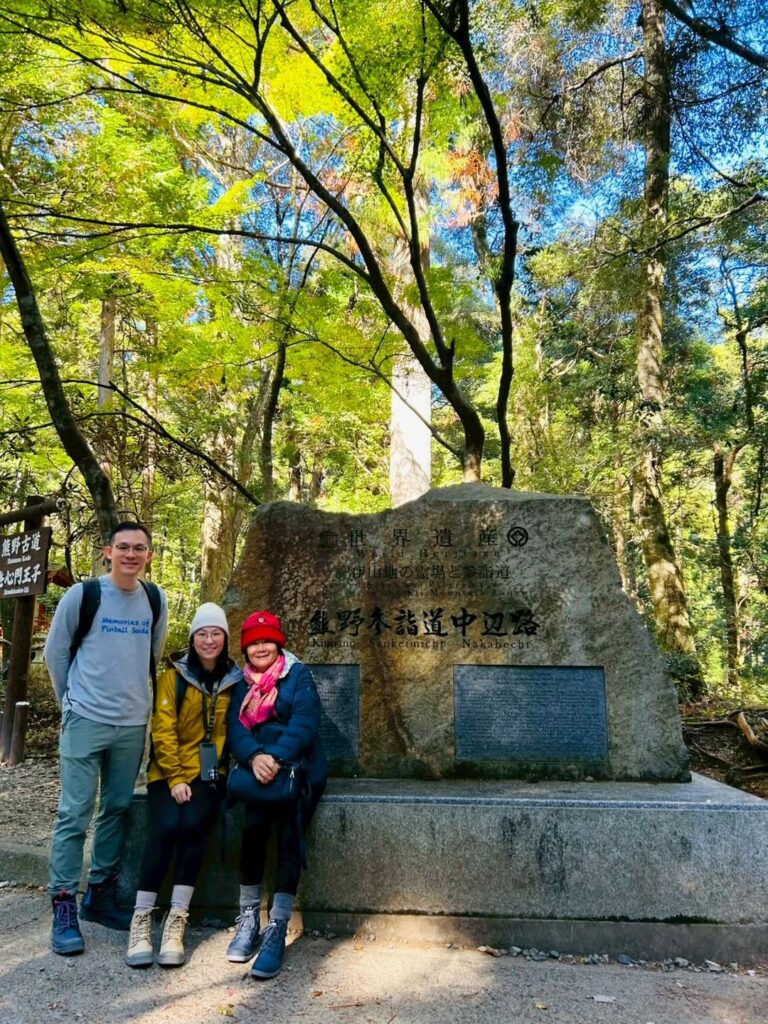発心門王子から、旅人たちは熊野古道の秋の旅へと歩みを進めました。ここは浄化と再生の地。澄んだ山林の空気を胸いっぱいに吸い込み、都会の喧騒や悩みを手放すと、思わず感嘆の声がこぼれます。木立の間に揺れる光と影、重なり合う葉の隙間から差し込む陽光が古道を照らし、一歩一歩が熊野の神々と大自然に優しく導かれているかのようでした。